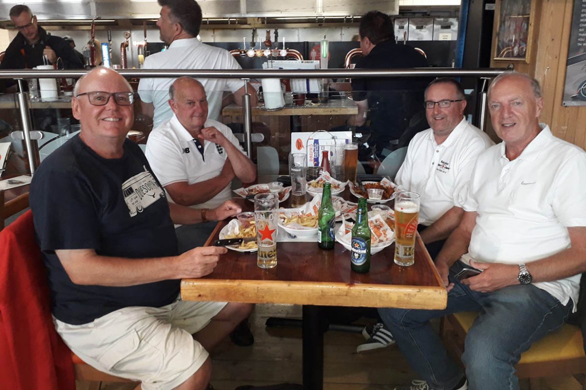On arrival we teamed up with Higgy for a few beers, but were also surprisingly joined by a pal of Wycombes that we had not seen since an Australian tour some years ago. This lad is called ‘Sober Nick’ for a reason, and several years working on Guernsey meant he already knew Lofty well. The session quickly degenerated into a hilarious dissection of Loftys possible involvement with the German occupation of his island. Collaboration was even discussed but in the end the worst we could come up with, given the dates, was that Lofty might have had a swastika painted on the side of his pram. Nevertheless, as you might expect, this theme was expanded and developed over the next few days. Lofty, as usual, took it all in good heart.