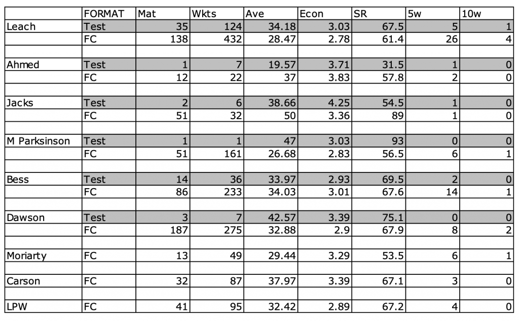 On this evidence Jack Leach is both our best and most experienced bowler. Assuming his back heals and he has some luck he can expect to come back into the XI.
