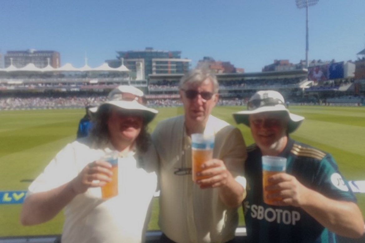 It’s a half an hour’s walk to Lords from our Paddington hotel down Marylebone Road which Irish says is the most polluted street in the country. We stop at Waitrose for sandwiches and cans of beer and a bit further on call in for breakfast at a rather greasy spoon. I’m a birthday boy today and take a call from Australia from my sister Alex who will be remembered by Addis tourists for the excellent barbeques she and the late lamented Bill gave when England were playing at Adelaide.